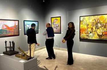 Rakan Khzam’s artistic style is heavily influenced by his background in interior architecture, as seen in the structured compositions and geometric elements that define his work. His art explores the relationship between the human psyche and architectural forms, drawing parallels between emotions and structural elements such as domes, columns, arches, and angles. These forms, whether appearing rigid or delicate, embody an innate strength and beauty through their ability to endure...