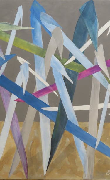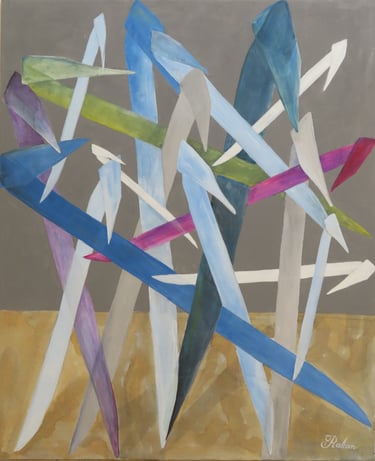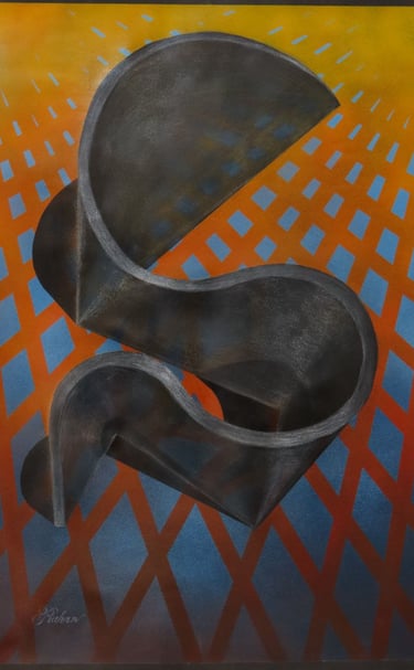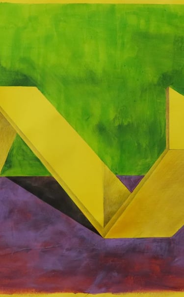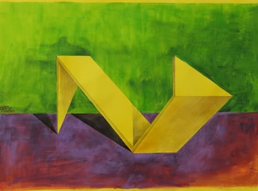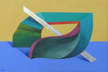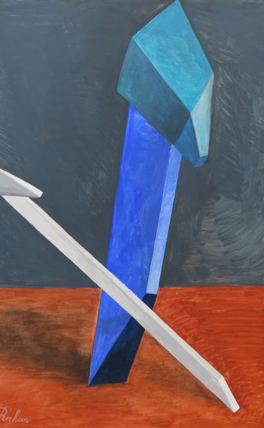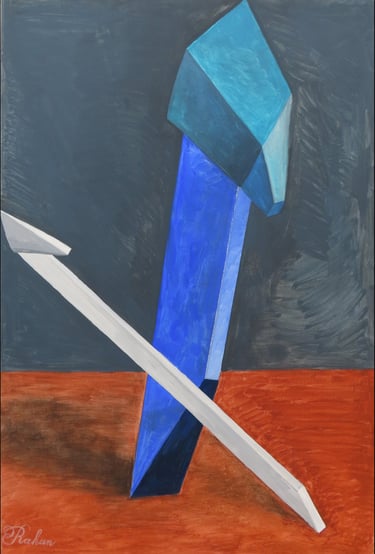 Rakan Khzam is a Syrian artist born in Homs in 1991. He grew up and completed his early education in Homs before moving to Damascus to pursue his studies at Damascus University. He graduated in 2014 with a Bachelor's degree in Fine Arts, specializing in Interior Architecture. His background in interior architecture is distinctly reflected in his paintings, which are characterized by geometric patterns and architectural forms...