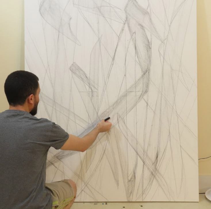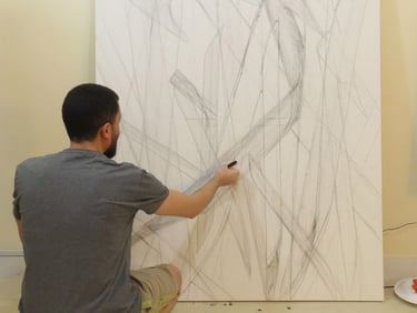 Rakan Khzam’s artistic style is heavily influenced by his background in interior architecture, as seen in the structured compositions and geometric elements that define his work. His art explores the relationship between the human psyche and architectural forms, drawing parallels between emotions and structural elements such as domes, columns, arches, and angles. These forms, whether appearing rigid or delicate, embody an innate strength and beauty through their ability to endure.